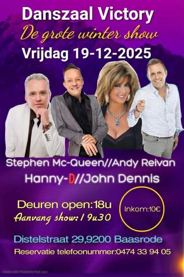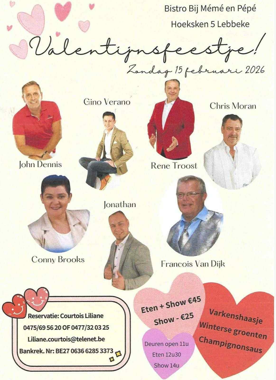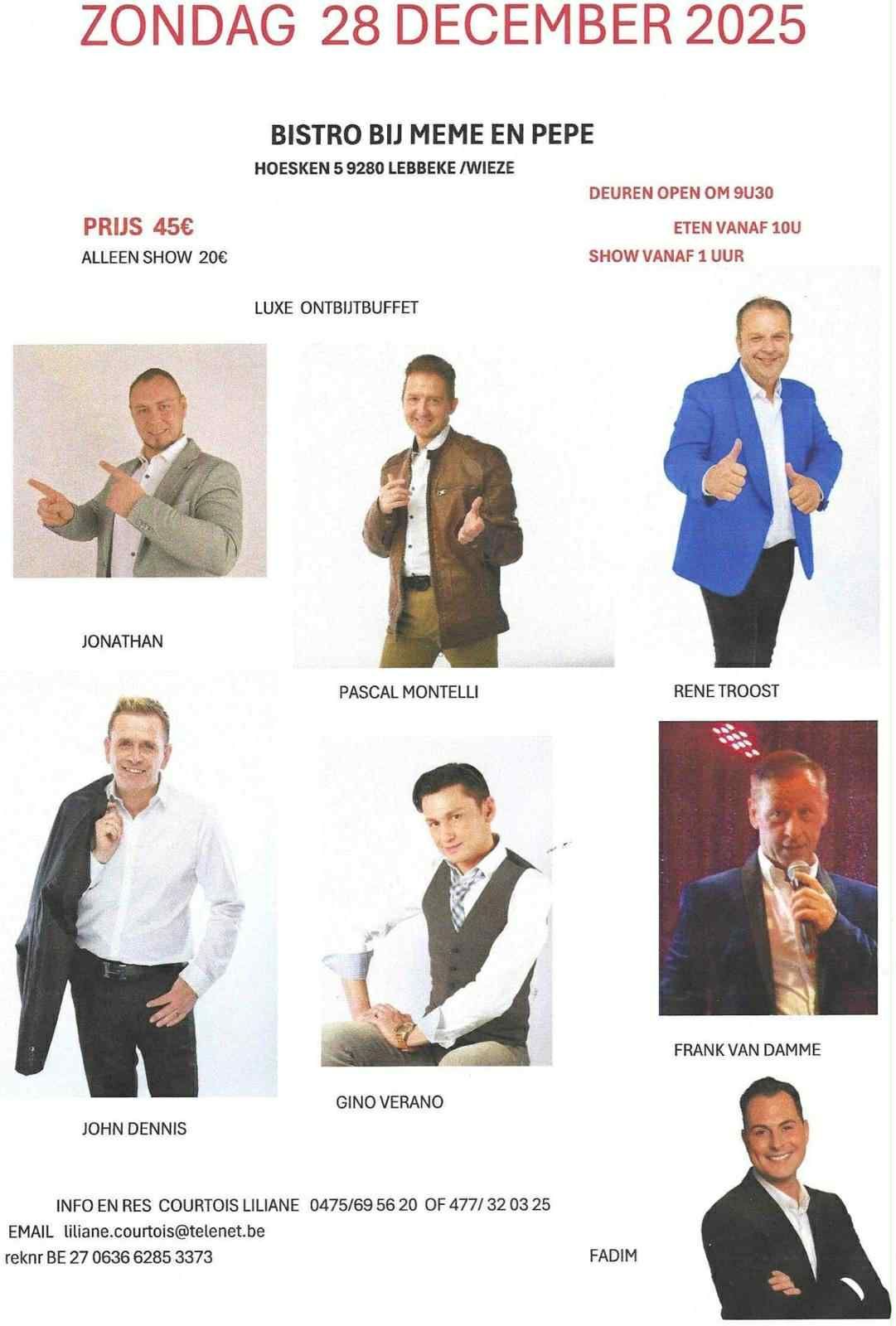 Show: 13u45 Hapjes: tussen 18uur en 19uur