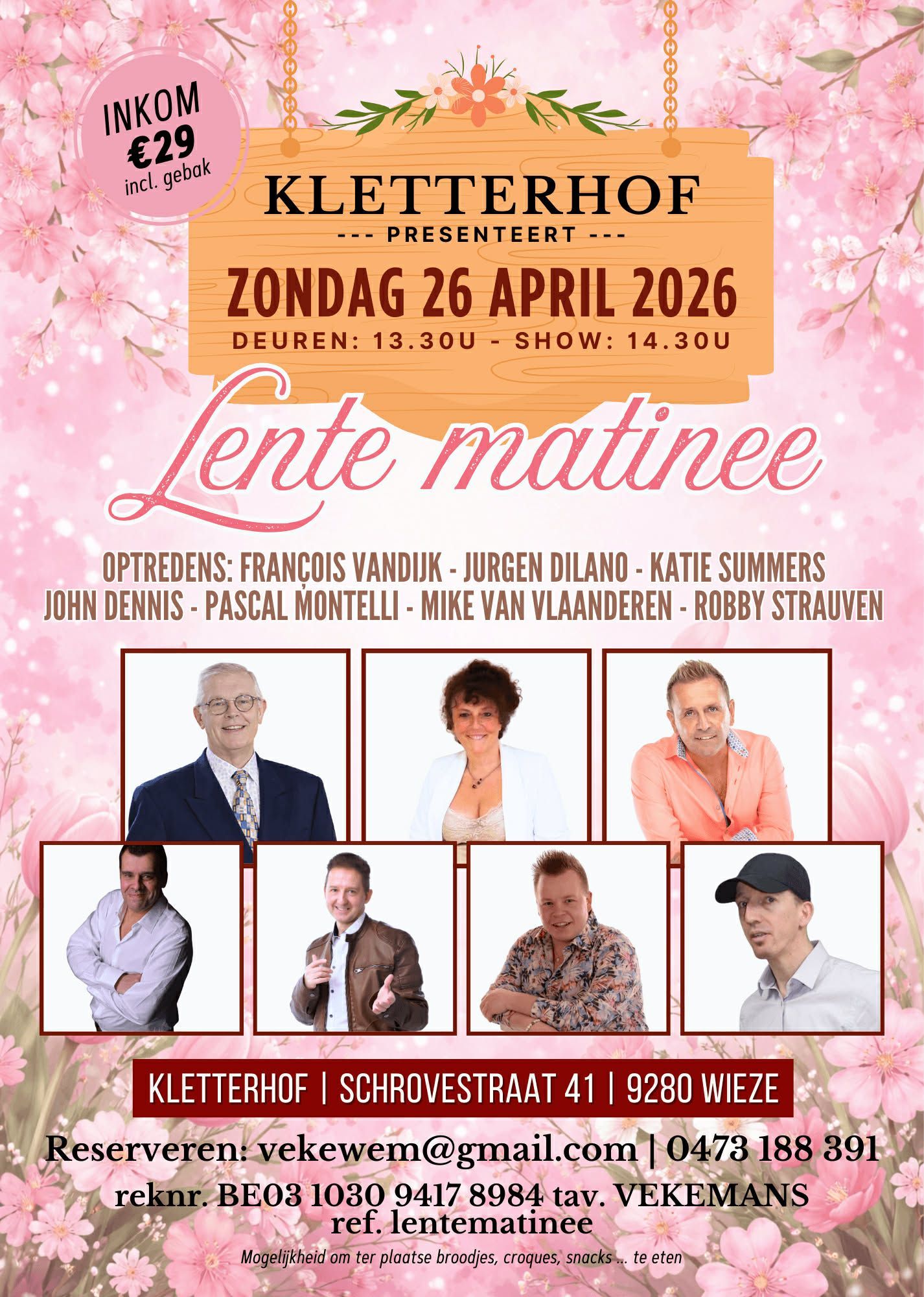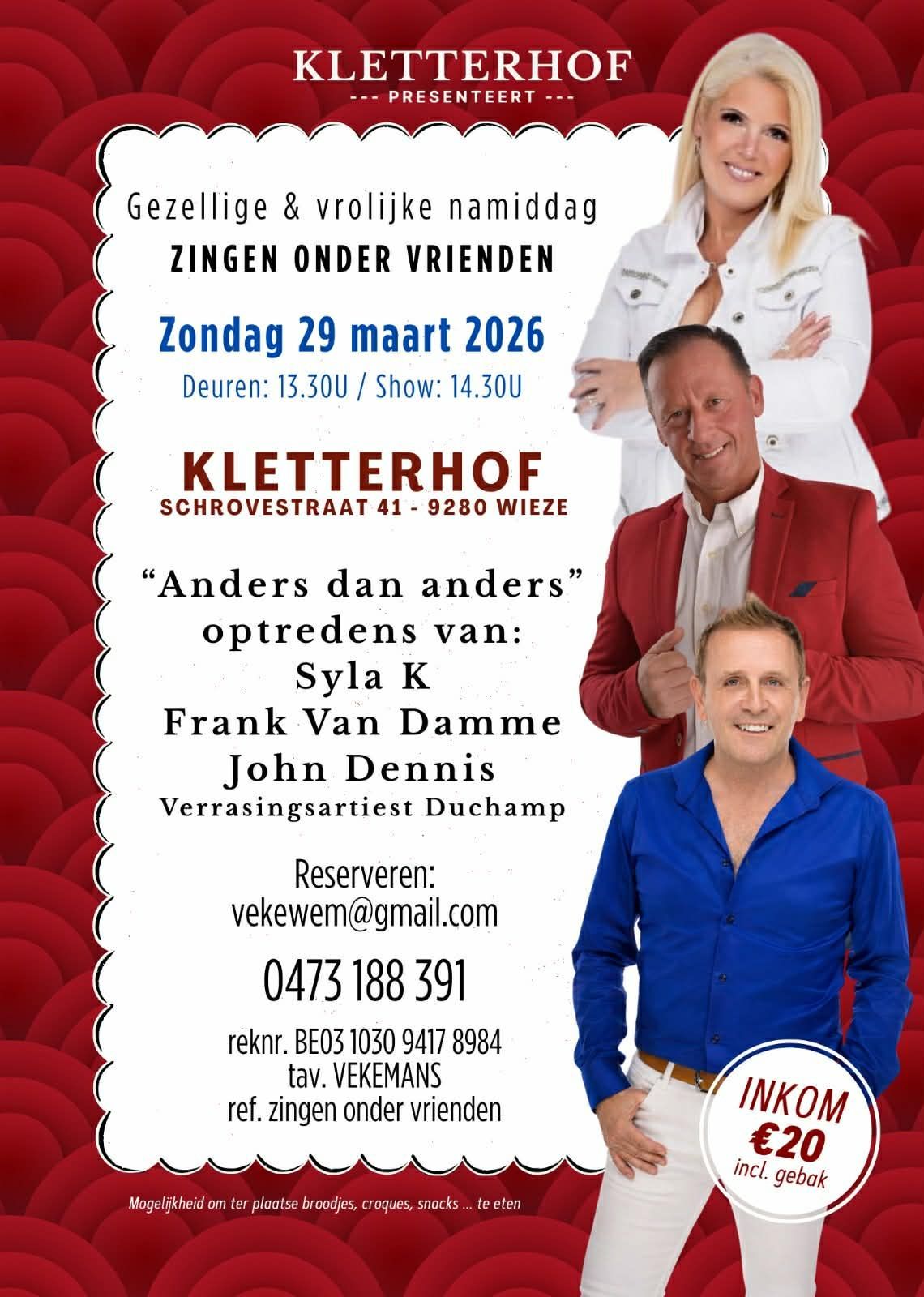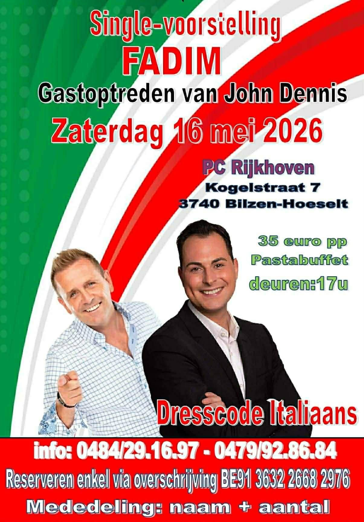 Prijs: €25 zitplaats ( excl. Servicekost)